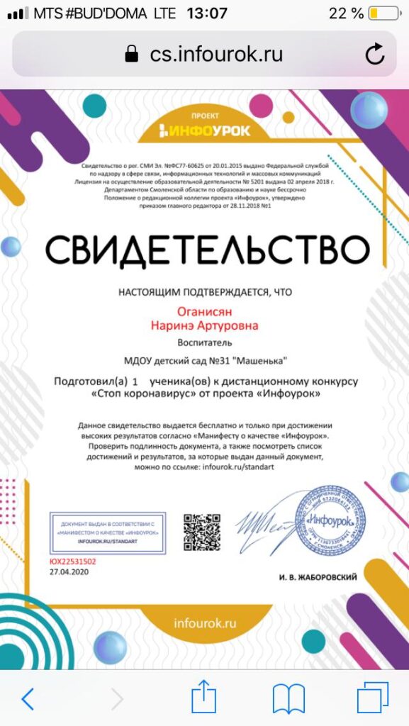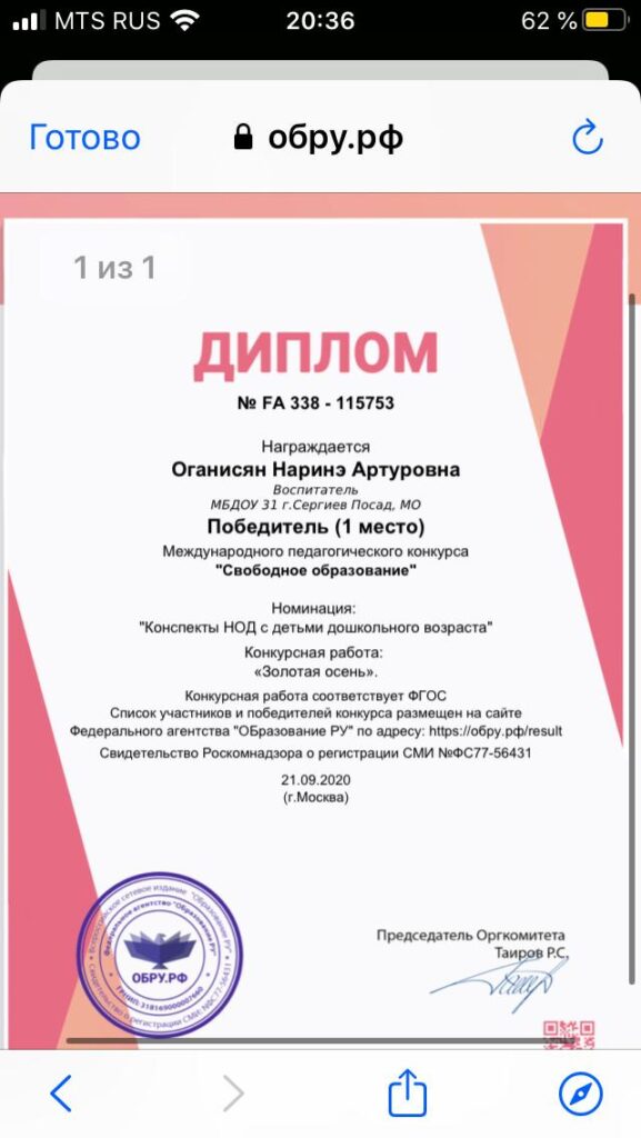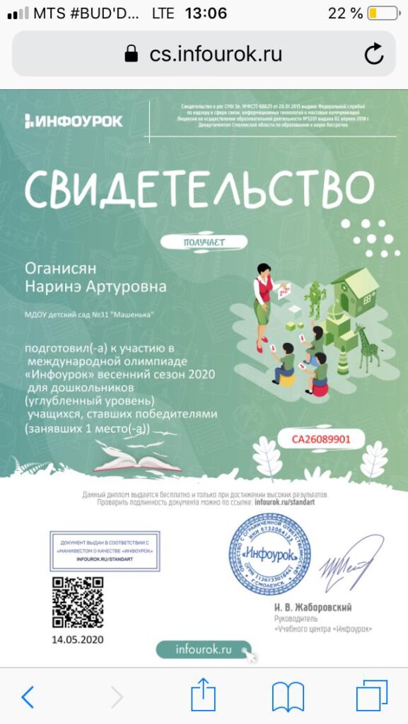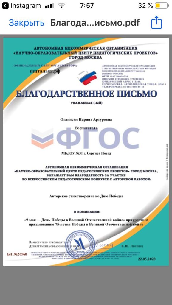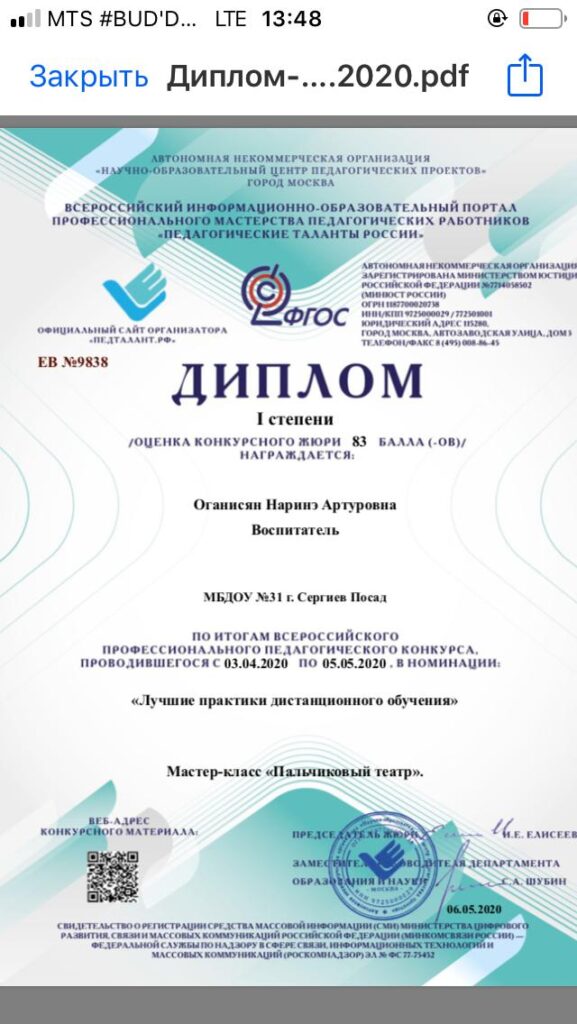 Достижения воспитателя